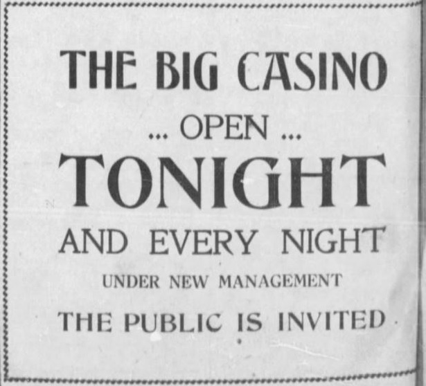 Thus, on Aug. 21, 1913 the U.S. government assumed control of and began operating The Big Casino. Joe Monahan was in charge of the gambling component.